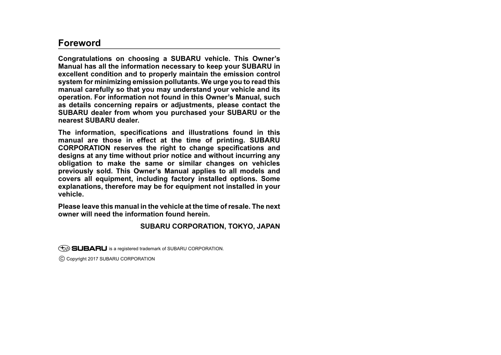 2018 Subaru Crosstrek Owner's Manual | English