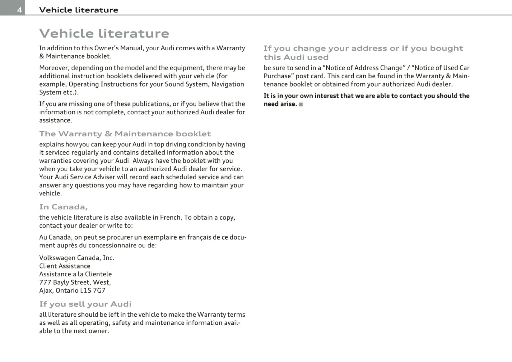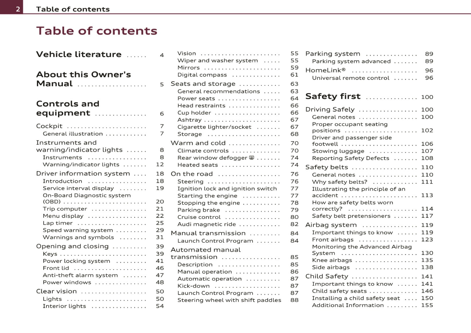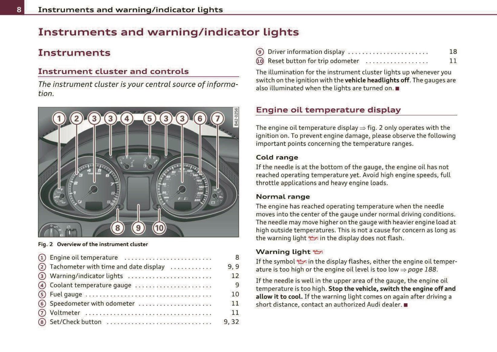 2010 Audi R8 Owner's Manual | English US