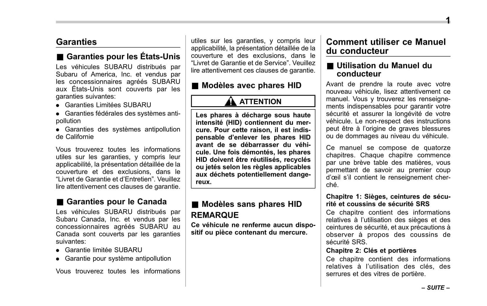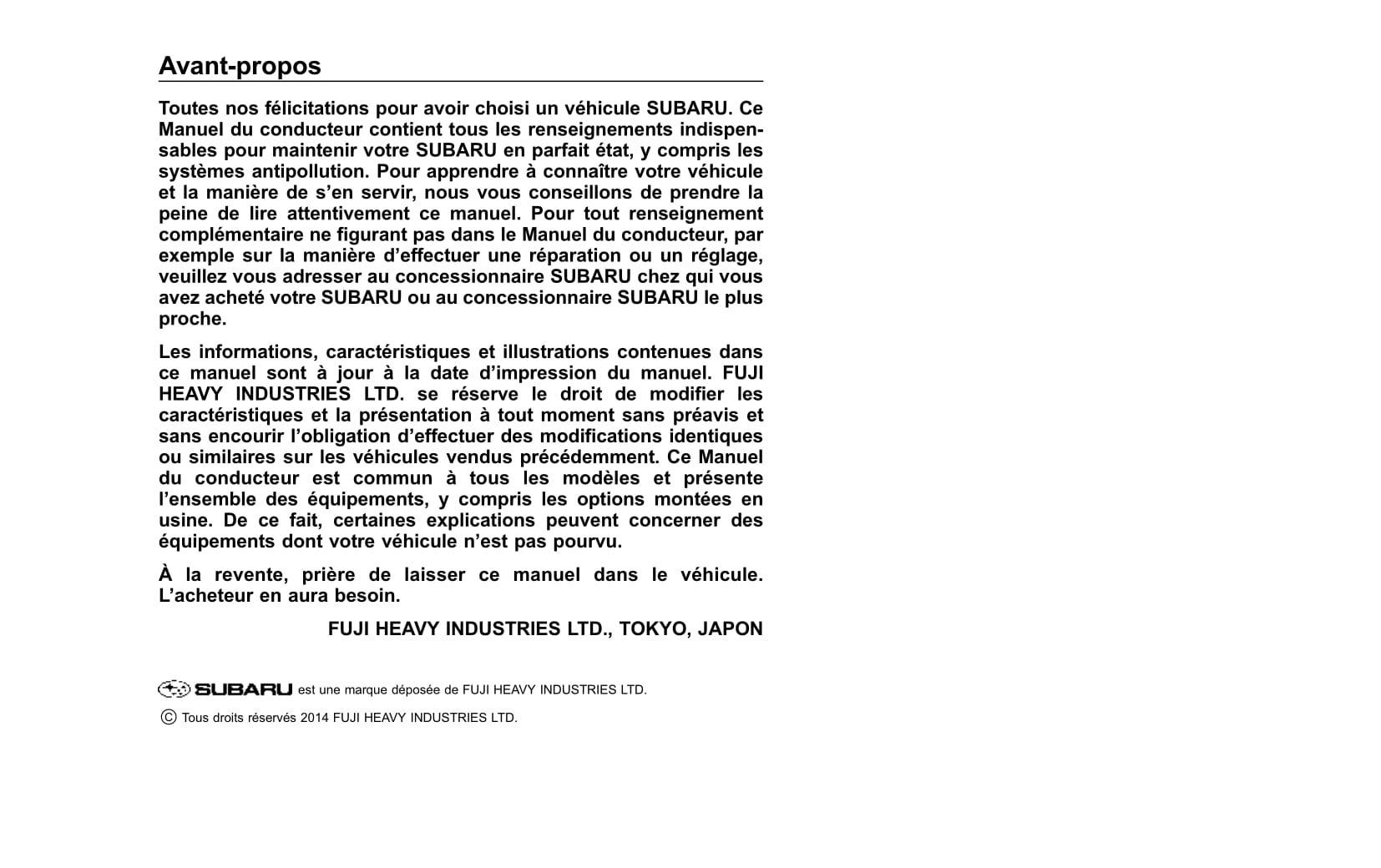 2012-2017 Subaru XV/Crosstrek Manuel du propriétaire | Français